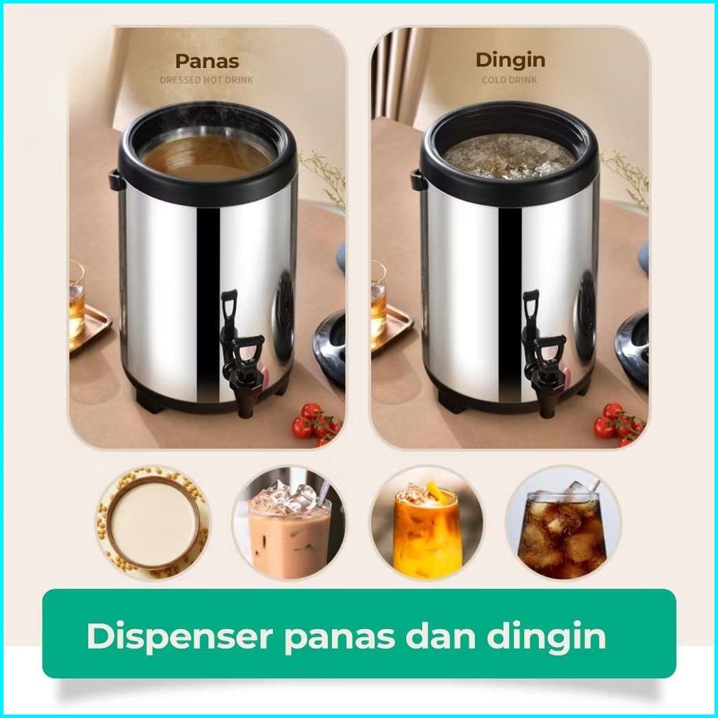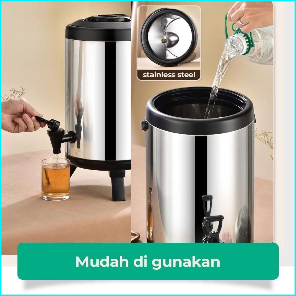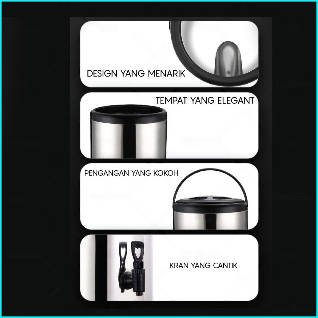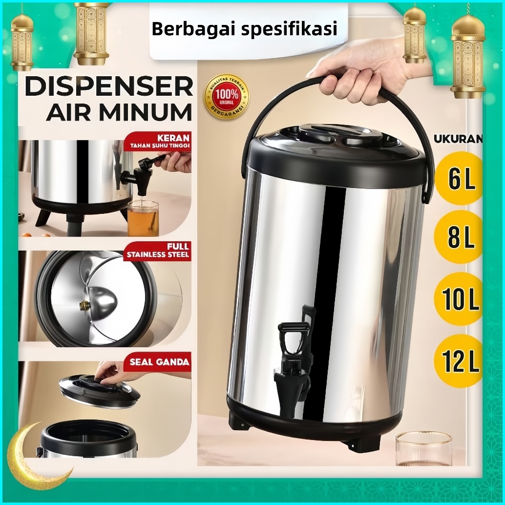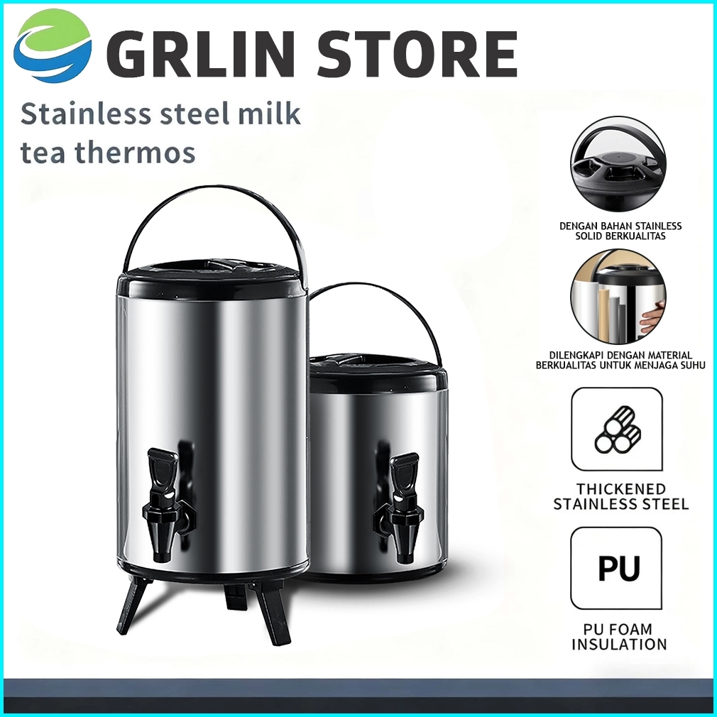 Grlin Termos Air Milk Tea Jug Bucket Termos Air Panas Dingin Dispenser Stainless Steel 8l 10l 12l