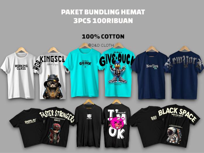 Kombo Hemat Kaos Pria 3Pcs 100Ribuan/Kaos Paketan Keren/Kaos Distro Viral Terpopuler /Kaos Keren - Paketan Hemat 1, M