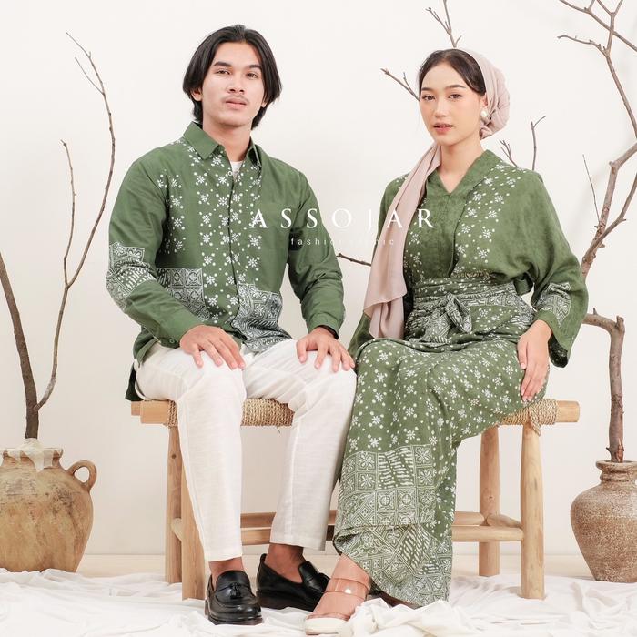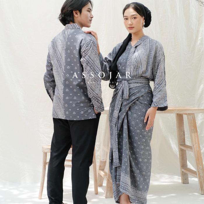 Baju Couple Batik Sarimbit Couple Sekarset X Kemeja Motif Pasangan - Abu-Abu, Allsize + Kemeja M