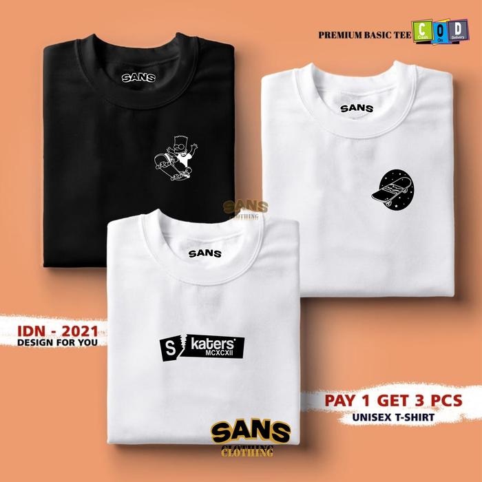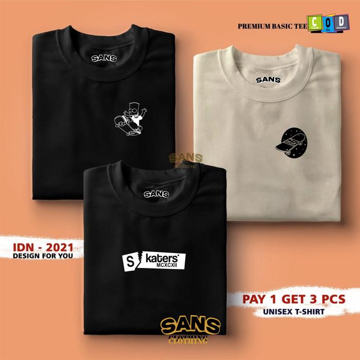 Buy 1 Get 3 Pcs(Promo )Sans Clothing-Kaos Distro Pria-Kaos Distro Terbaru Skaters 100 PERSEN Premium - Army-Abu Tua-Cream,