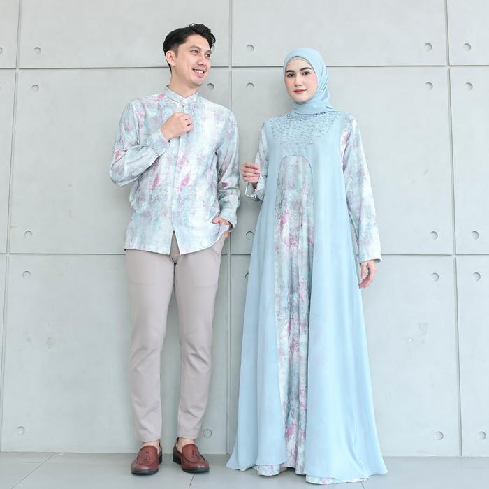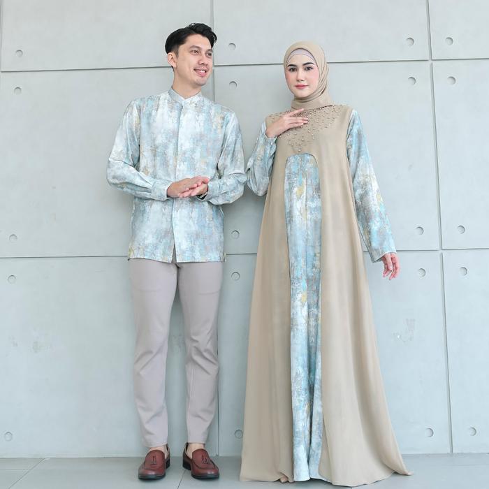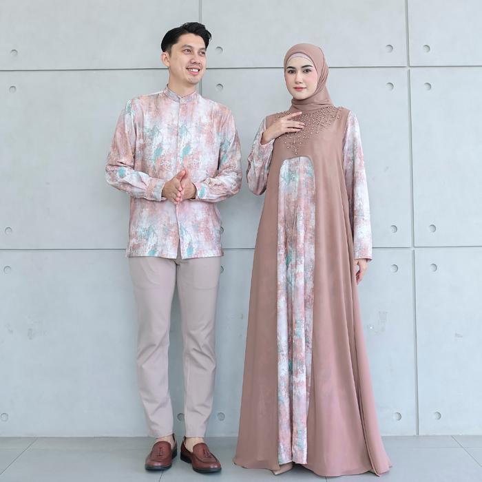Aisyalina Id Vol 6 Sarimbit Collection Arum Set Dress & Umar Kemeja Raya Series Bahan Linen Crespo Motif Printing Mix Ce