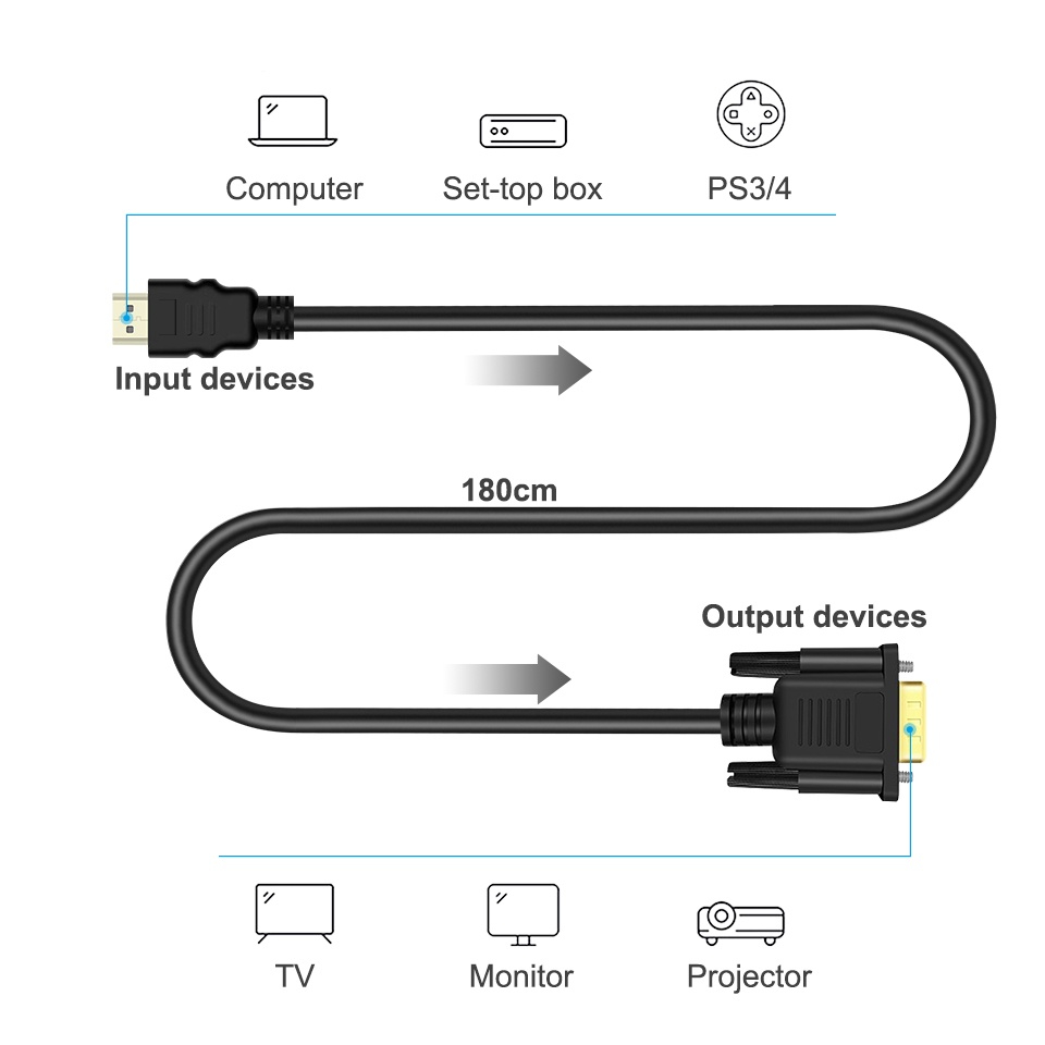 EYD HDM02 HDMI to VGA Cable 1080P Cable with Audio Video HDMI Male to VGA Male Cable 1920 x 1080P (1.8m)