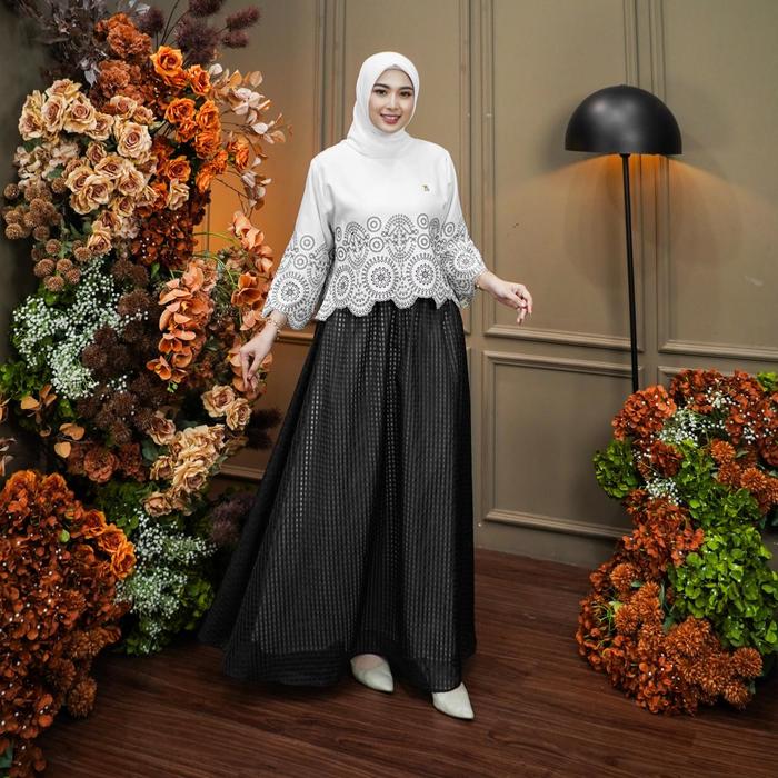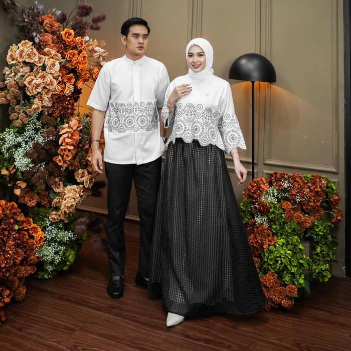 Dumma.Id - Couple Set Haruka Set Skirt Couple Catton Madina Mix Skirt Square Organza, Aksen Bodir Pakaian Couple - Lady