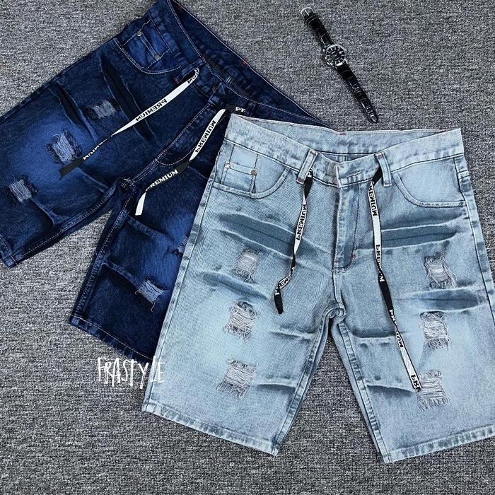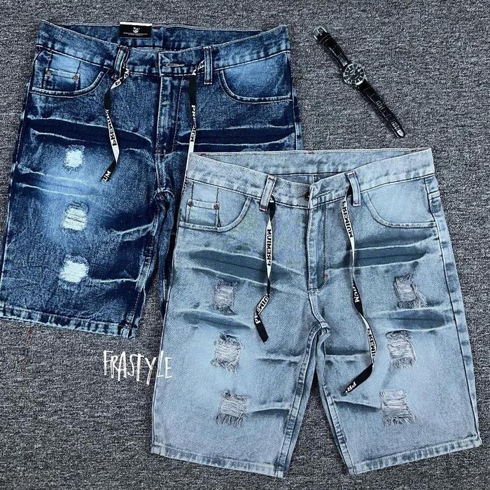 Celana Pendek Jeans Cowok Paket Hemat 100Rb Dapat 2 Pas || Celana Jeans Pendek Sobek Distro Shorts Kain Tidak Melar Teba