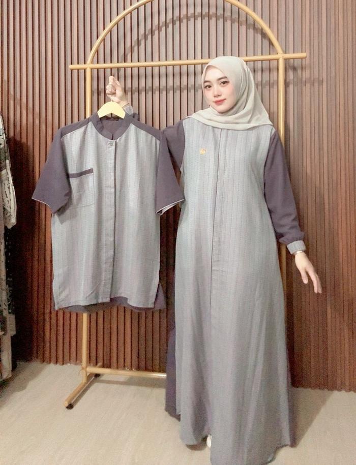 Gamis Couple Lebaran 2026 Model Simple Elegan Kekinian Bahan Viscose Jaquard Mix Sabrina Lembut Adem Jatuh Dress Muslim