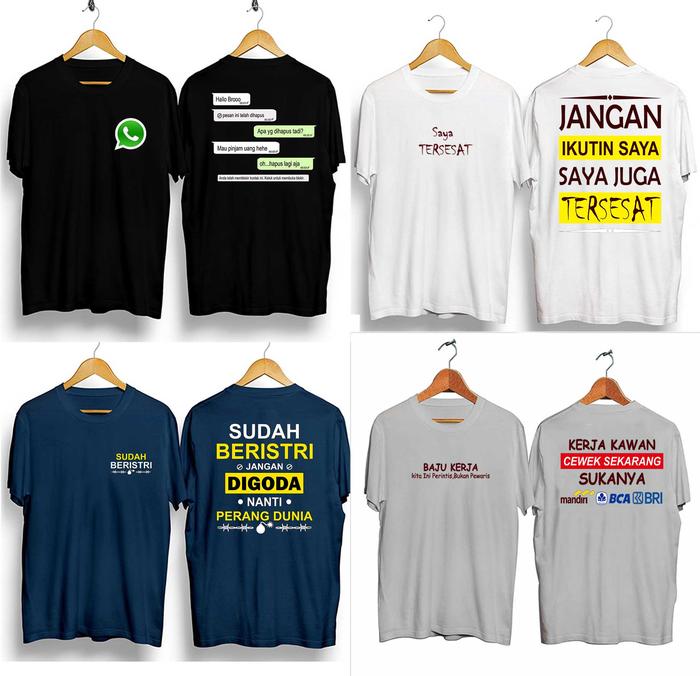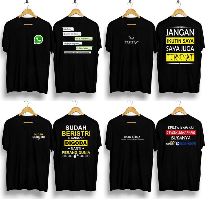 Paket Bundle 4 Pcs Kaos Distro Kata Kata Keren T-Shirt Lengan Pendek - Paket Vol Wa 4Pcs-Hitam, M
