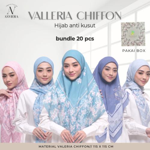 [20 Pcs+Box] Zr-Anviera Hijab Motif Valeria Chiffon Premium | Hijab Seragaman - Random, Pilih Di Live / Chat