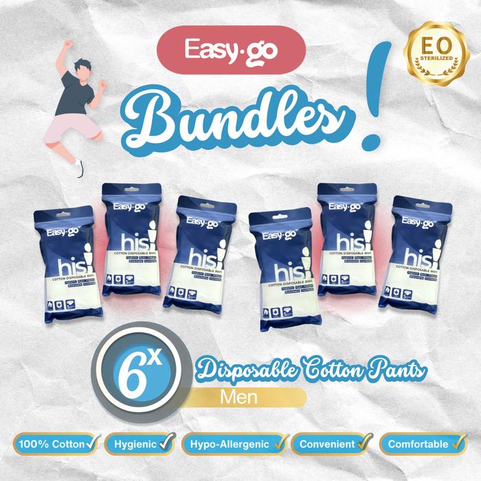 Bundling 6X Easy Go Disposable 100 PERSEN Cotton Pants Men Travel - M
