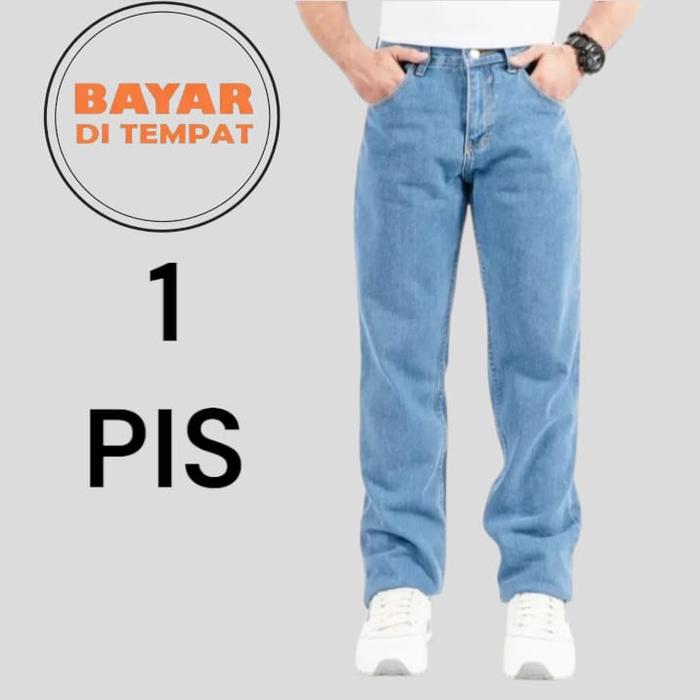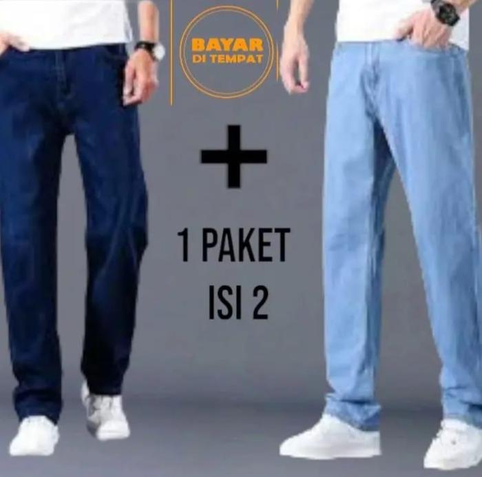 Promo 100Rb Paket Hemat 1 Paket Isi 2 Celana Celana Jeans Standar Panjang Pria Reguler Tidak Melar - Biru Muda + Bir