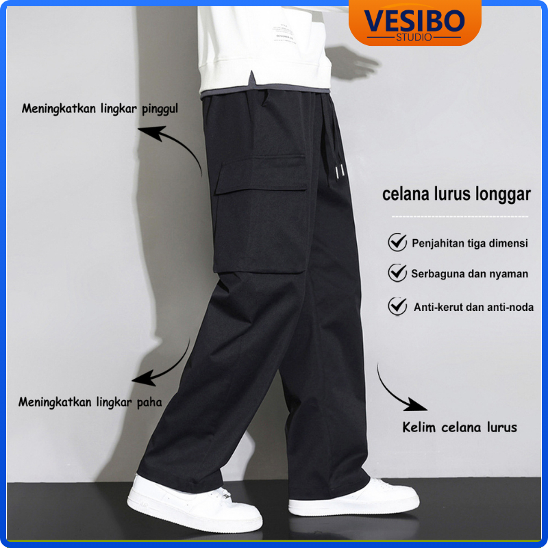 Celana cargo panjang pria 2024 new celana panjang cargo pria celana kargo pria jumbo baju celana pinggang karet celana S