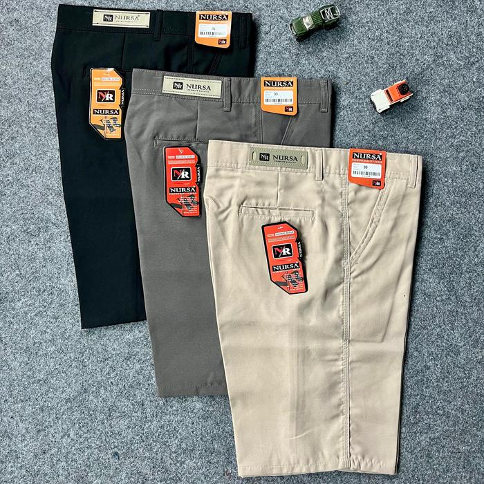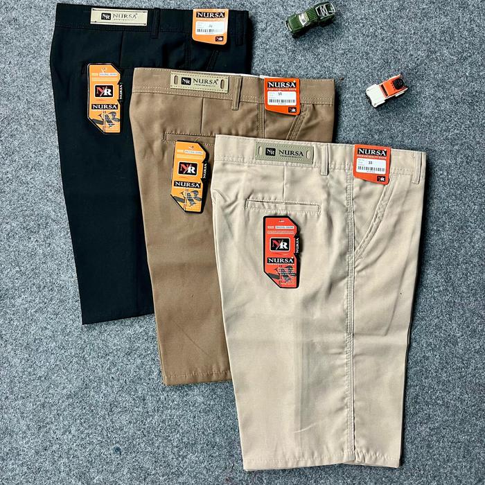 100 Dapat 3 Pcs Celana Pendek Chinos Katun Drill Tidak Melar Polos Pria Santai Shorts - Hitam,Moka,Krem, 27