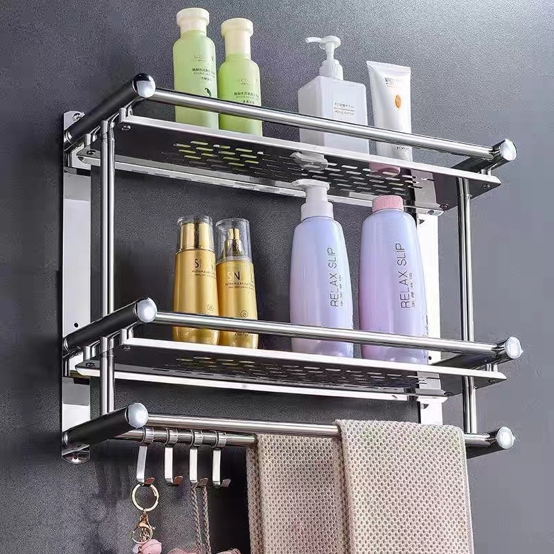 rak kamar mandi Rak Kamar Mandi Stainless Steel Rak Tempel Gantung Rak Handuk Rak Kamar Mandi Dinding Rak Bumbu Dapur
