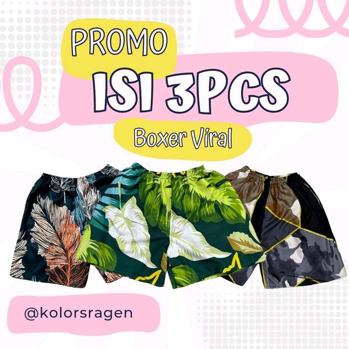 Boxer 3Pcs - Paket Hemat Celana Kolor Boxer | Celana Pendek Harian Bb 35-55Kg Xl Tanpa Saku - Motif Cowok