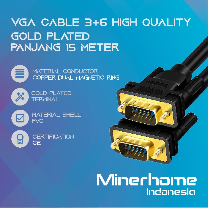 Kabel VGA Kualitas Standard High Quality 1/3/5/10/15 Meter