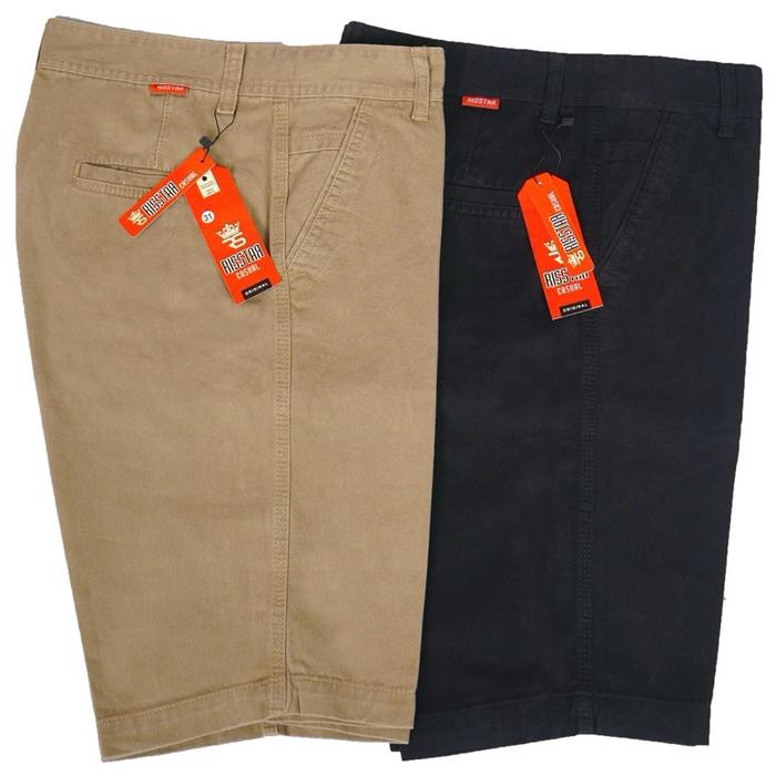 1 Paket Isi 2 Celana Pendek Katun Kanvas Non Strecht Pria Tebal Distro Panjang Shorts - Hitam+Abu, 28