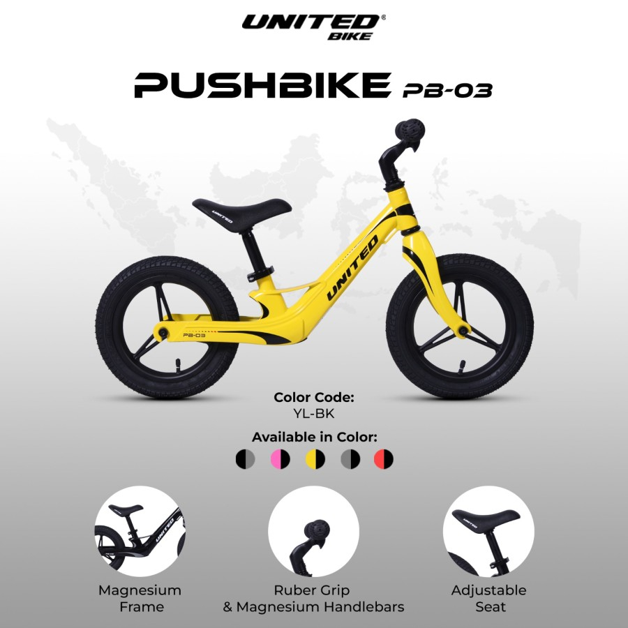 Pushbike Anak Balance Bike United 03 2023 New Frame Magnesium Ringan Dan Kuat SNI New