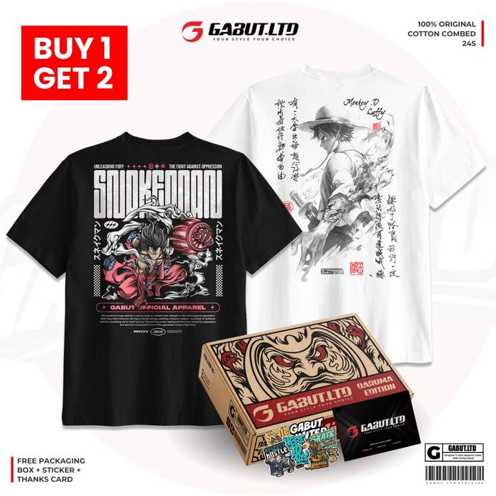 [Gabut] - Paket Bundling 2Pcs Kaos Distro Unisex Motif D. Luffy Dan Snakeman Gear-4 Bahan Cotton Combed 24S Baju Kaos Ob