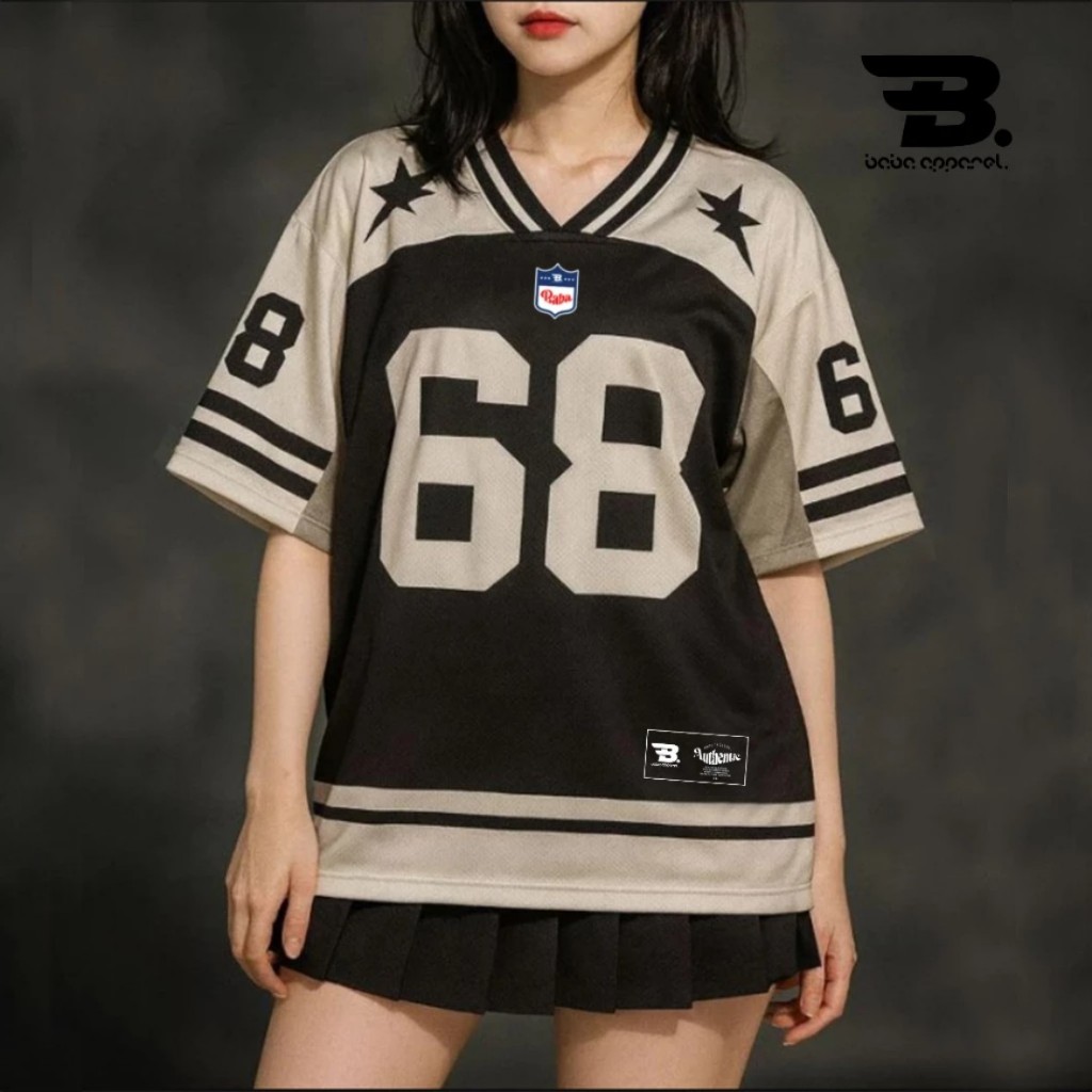 ALBAAITS Kaos Jersey BLACK 68 Oversize Retro Boxy Shirt