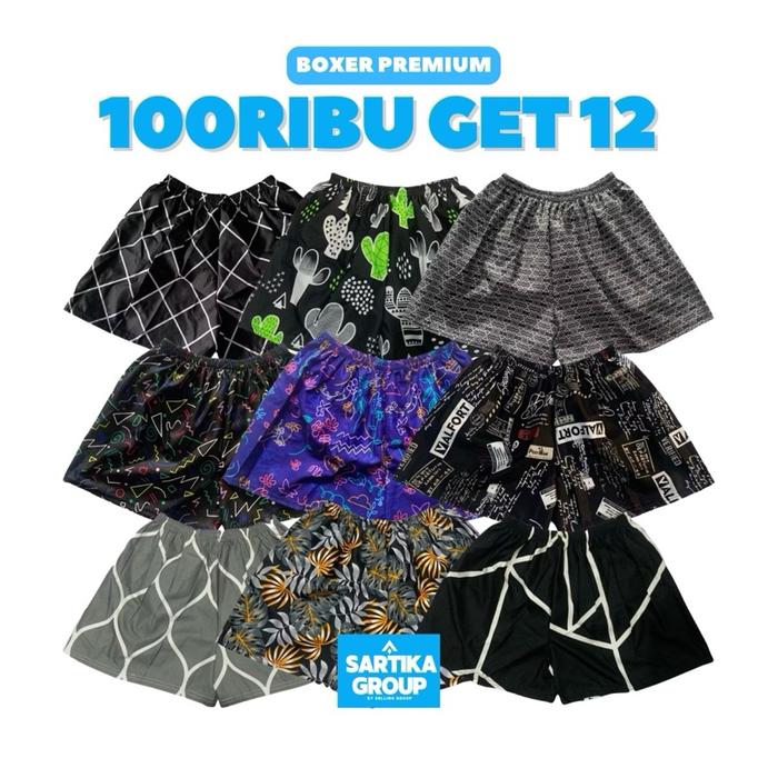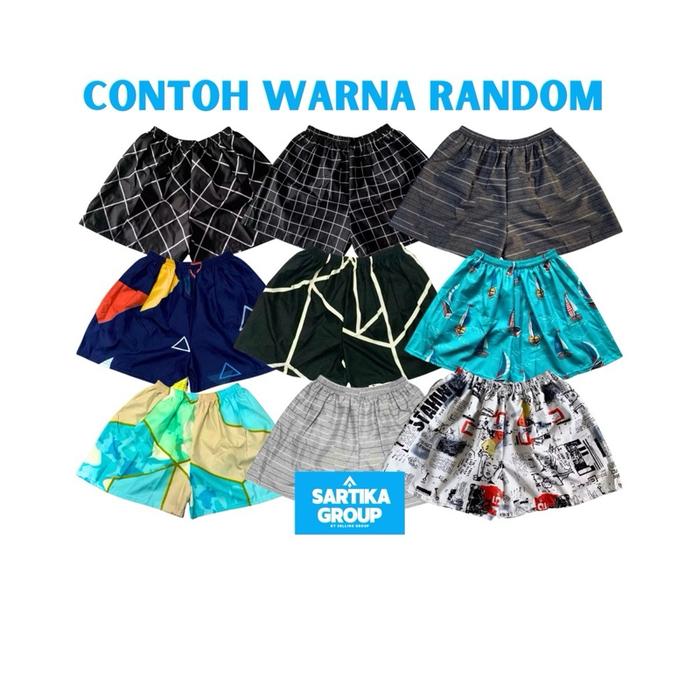 Paket Hemat 100Rb Dapat 12 Pcs Celana Kolor Boxer Pria Celana Pendek Harian Cewek Cowok Shorts - Boxer Motif Gelap, 5 Pc