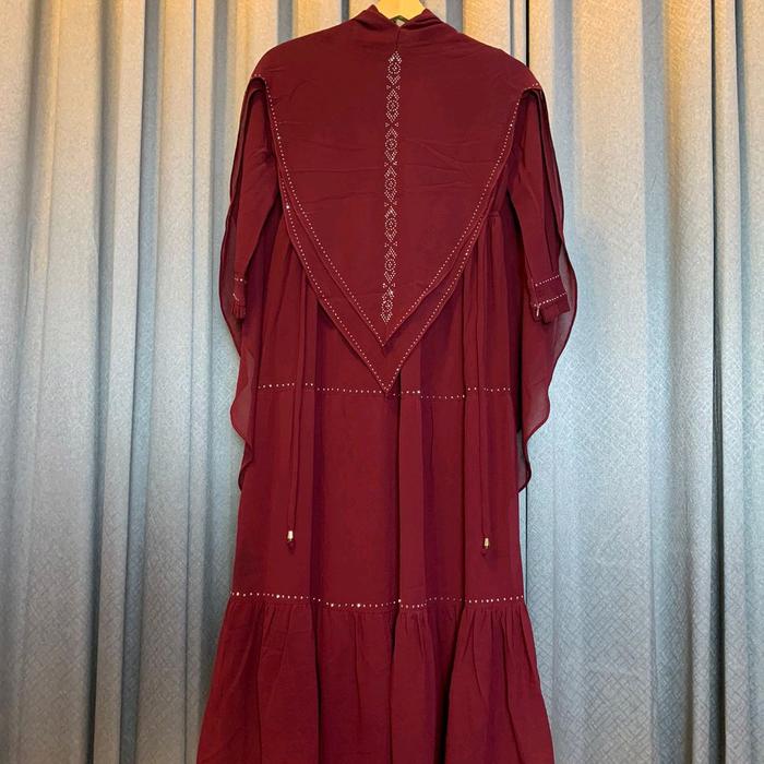 Gamis Syari Anak Canda Perempuan Umur 9 Thn Sampai 15 Thn Ceruty Mix Swaroski Polos Muslim - Marun, (12)9Thn-12Thn