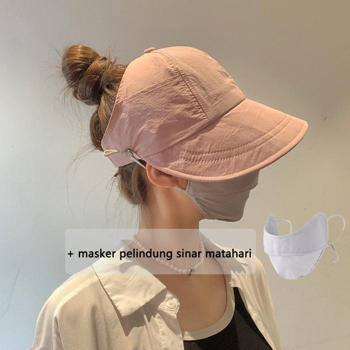 Kamova Topi Matahari Atas Wanita Dengan Masker Pelindung Sinar Uv Outdoor - Merah Jambu