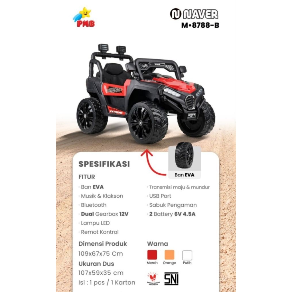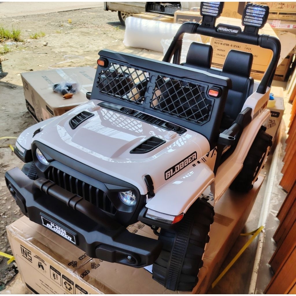Mobil Aki Mainan Anak PMB 8588 8788B Jeep Rubicon Blobber Ban Besar Dual Aki Dual Dynamo