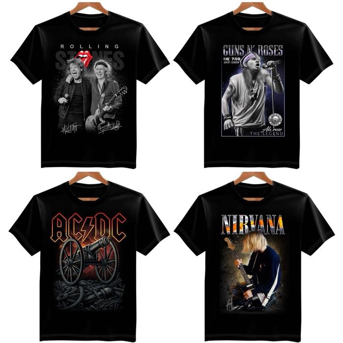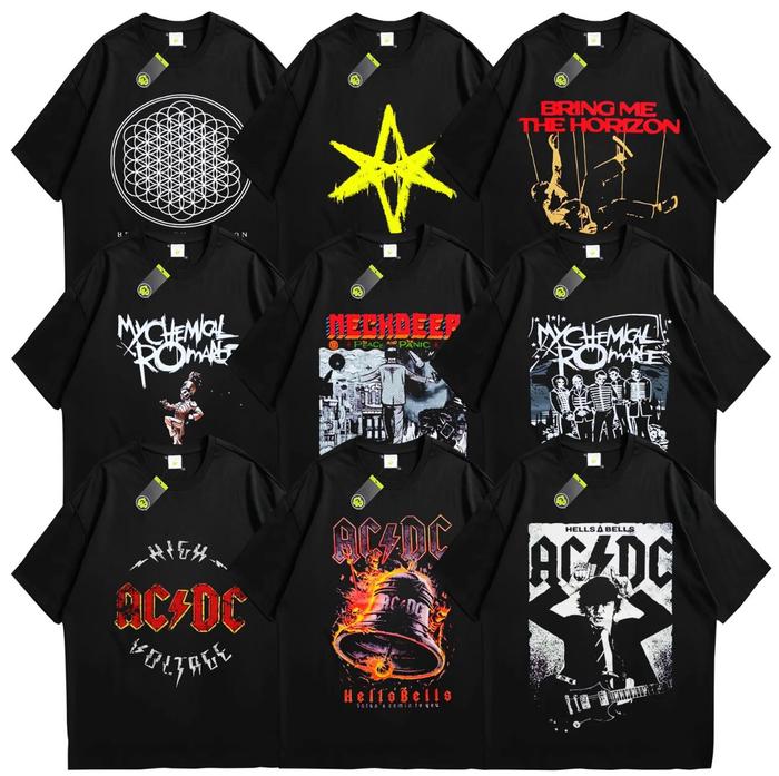 4 Pcs Kaos Distro Band & Non Band Paket Murah Semi Katun - 4Pcs Random, L