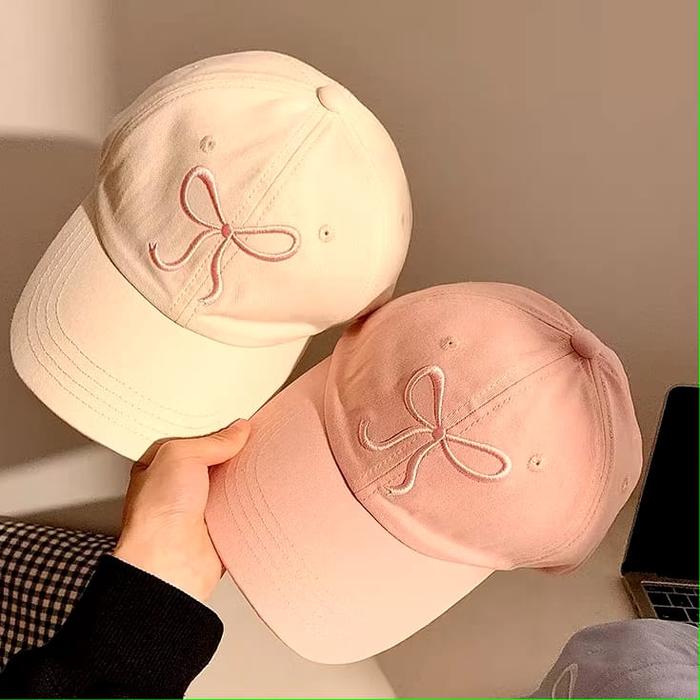 Topi Baseball Wanita Fashion Cap Bordir Pita Bow Simple Korean Look Topi Bassebal Pria Dan Wanita Anak Dewasa Perempuan