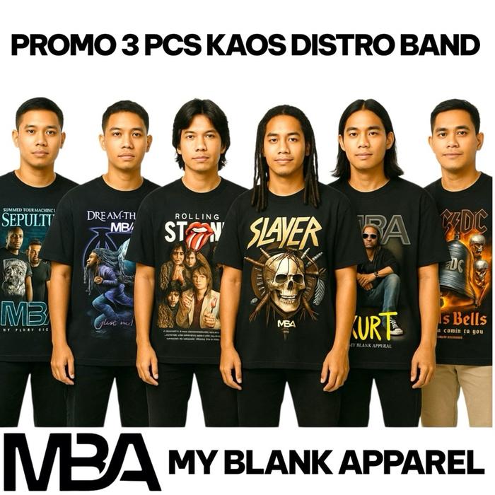 3 Pcs Mba My Blank Apparel Kaos Distro Rock Band Legendaris Dunia 100 PERSEN Cotton 24S Premium Unisex Fit Hitam Stok Terbatas
