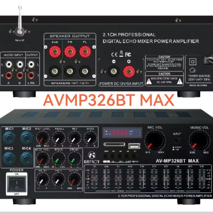 Amplifier Kerndy Bluetooth 5.3 Eq Audio Av326Bt Max Channel 2.1 Full Bass′ Subwoofer Amplifier Karaok Home Theater Kern