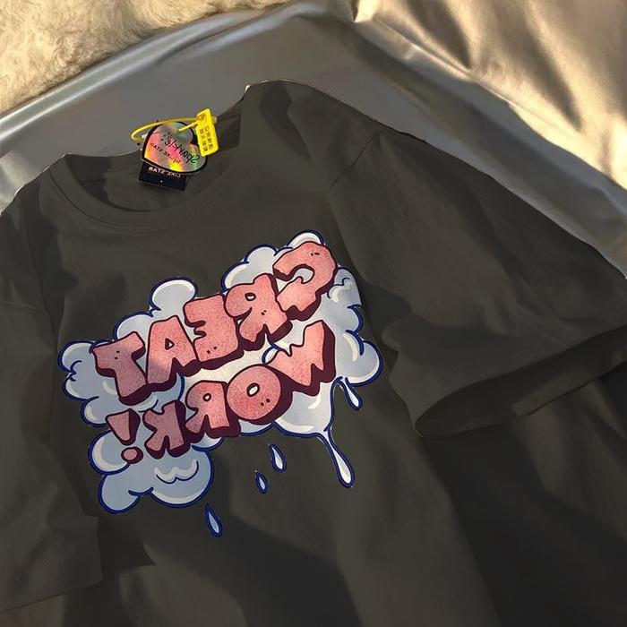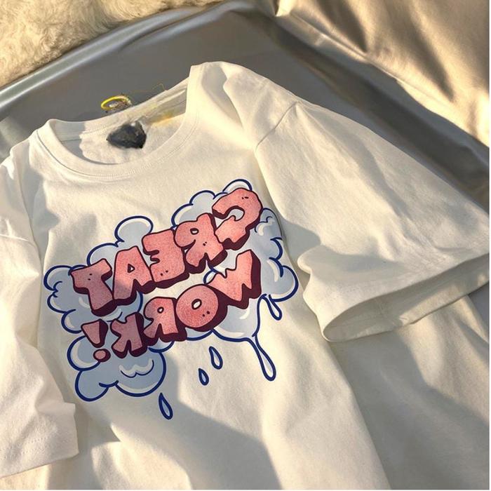 Great Work T-Shirt C0Tton Kiyowo Fit L (V1) Ntr Oversize Wanita Atasan Kaos Nyaman Combed Panjang - Putih