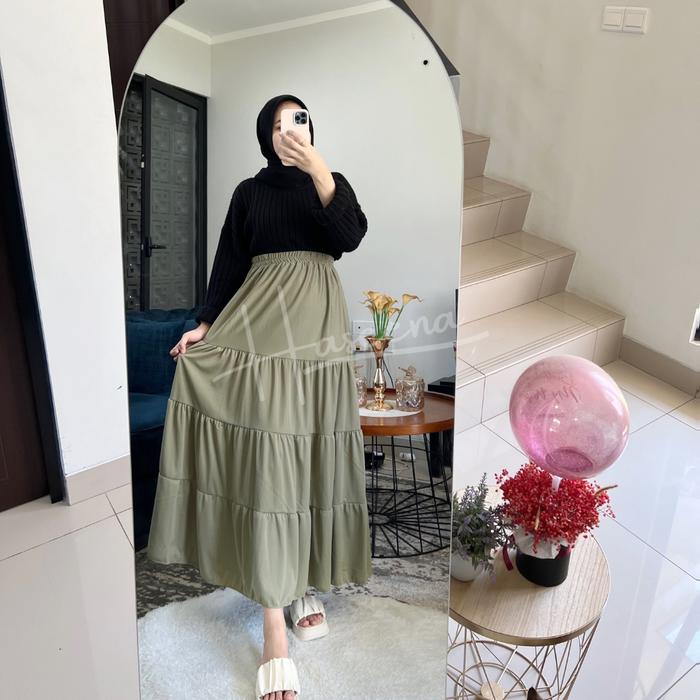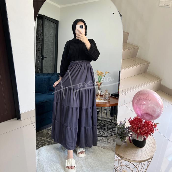 Haseena Rok Polos Susun Alifha Women Skirt Susun Empat Ruffle | Bawahan Wanita Muslim Style A Line Standart Jumbo Panjan