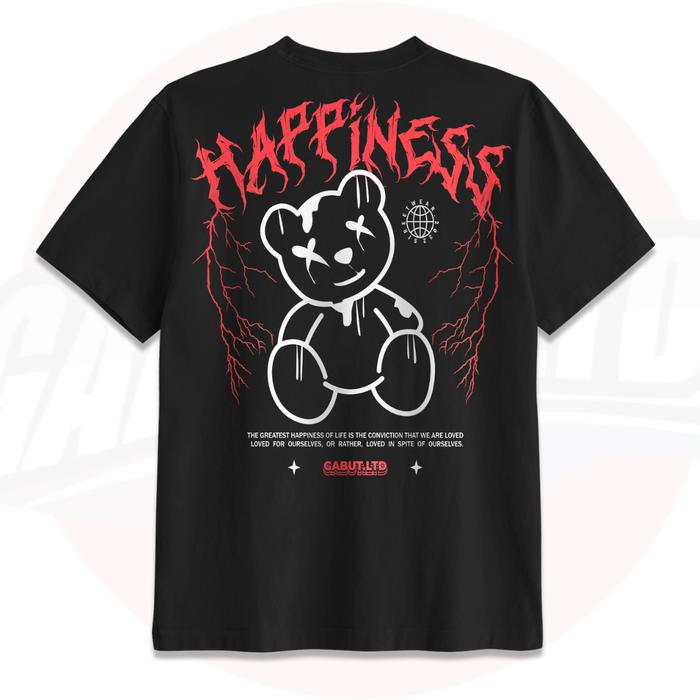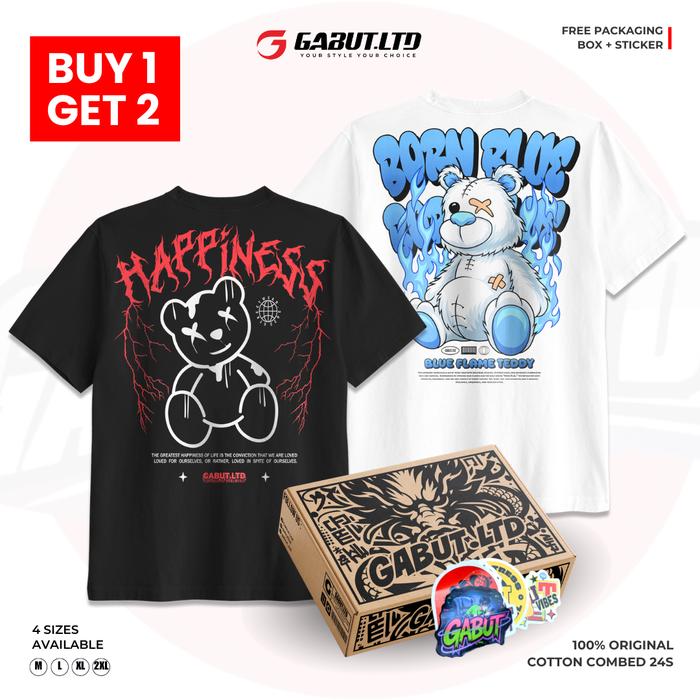 [Gabut] - Paket Bundling 2Pcs Kaos Distro Unisex Motif Teddy Blue Dan Bear Happines Bahan Cotton Combed 24S Baju Kaos Ob