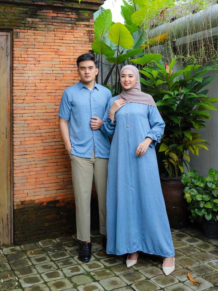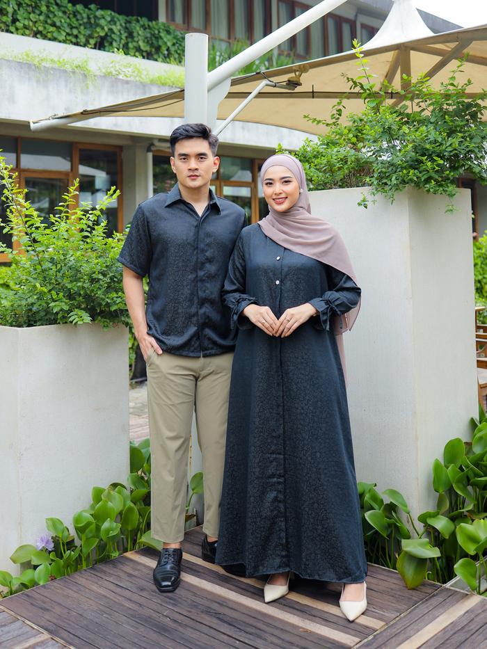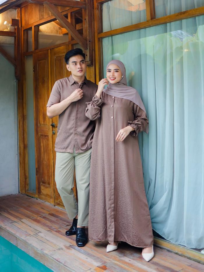 Anjali Setelan Couple Pasangan Keluarga Motif Coral Sarimbit Lebaran Kondangan Setelan Gamis Koko Dewasa - Gamis Coral