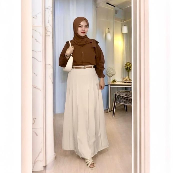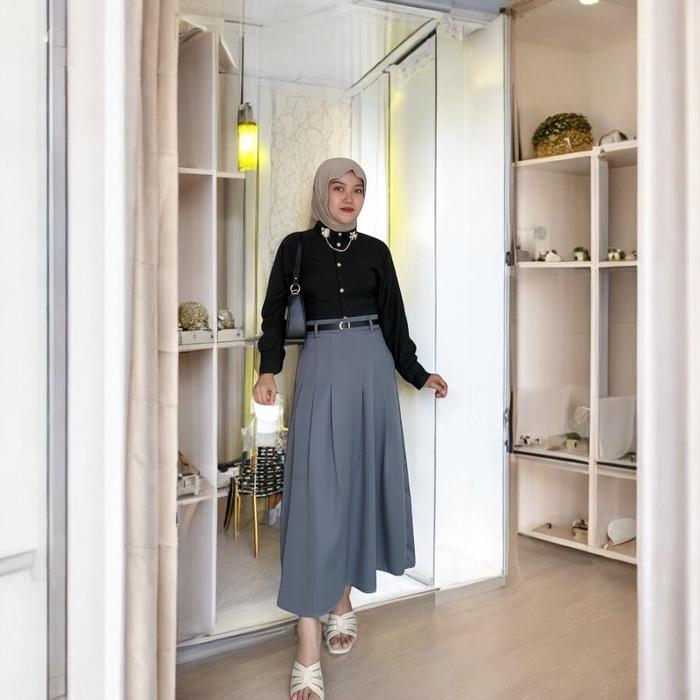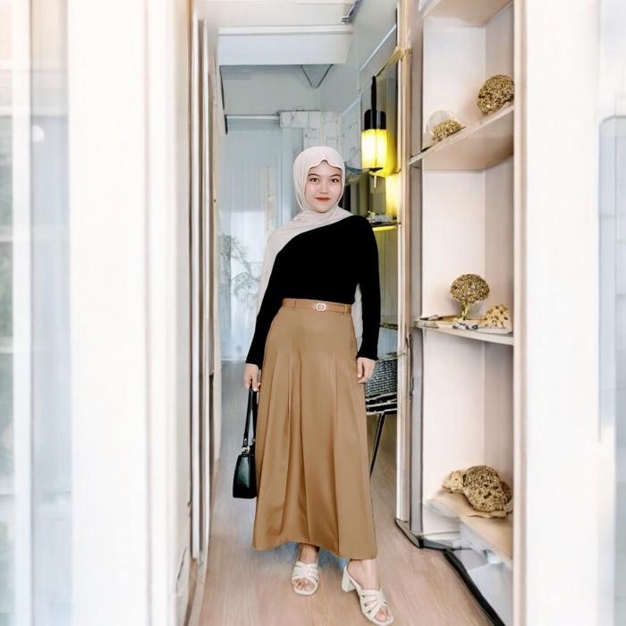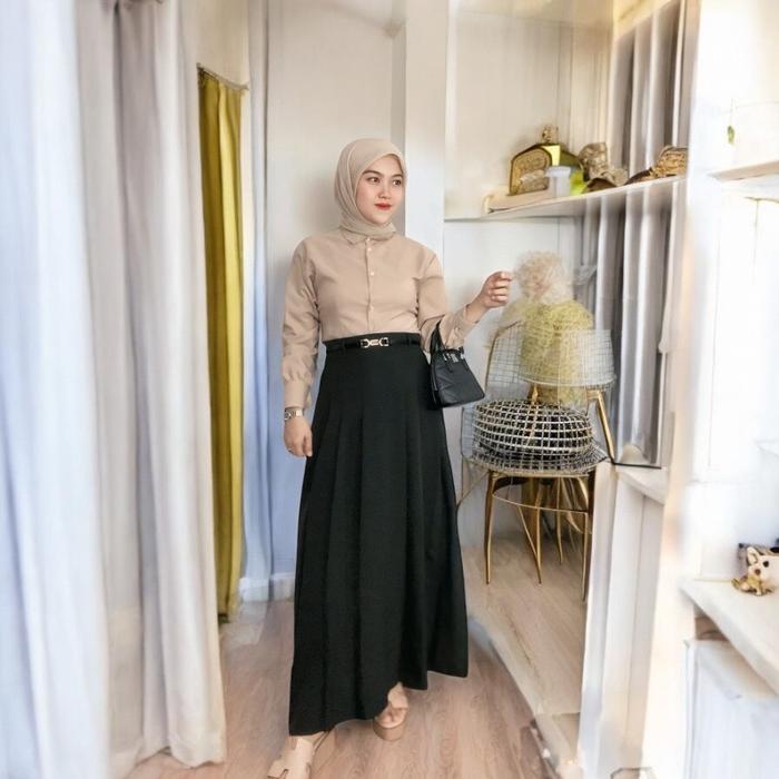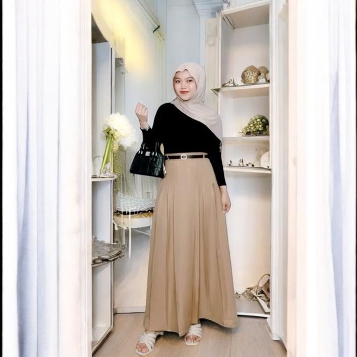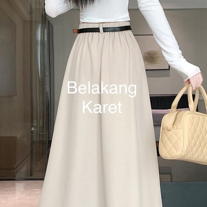 Jesi-Joy Skirt Korean Style- Model Rok Panjang & Rok Midi Wanita Variasi Karet Hitam Kain - Midi Hitam, M
