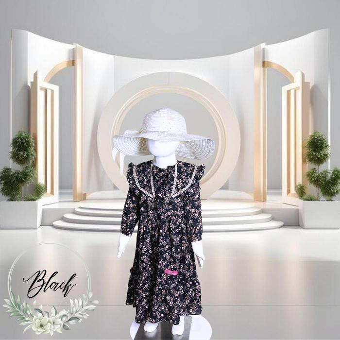 Kalinka Gamis Anak Rayon Motif Bunga 1-12 Tahun Couple Mom And Kids (Harga Terpisah) - Black (Kalinka), Xs (1-2 Tahun)