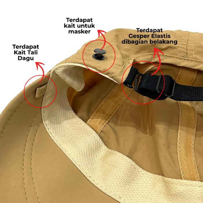 Yarra Topi Pantai Kait Masker Wanita Korea Anti Panas Matahari Bucket Hat Pengait Tali Dagu Gesper Karet Elastis Fashion