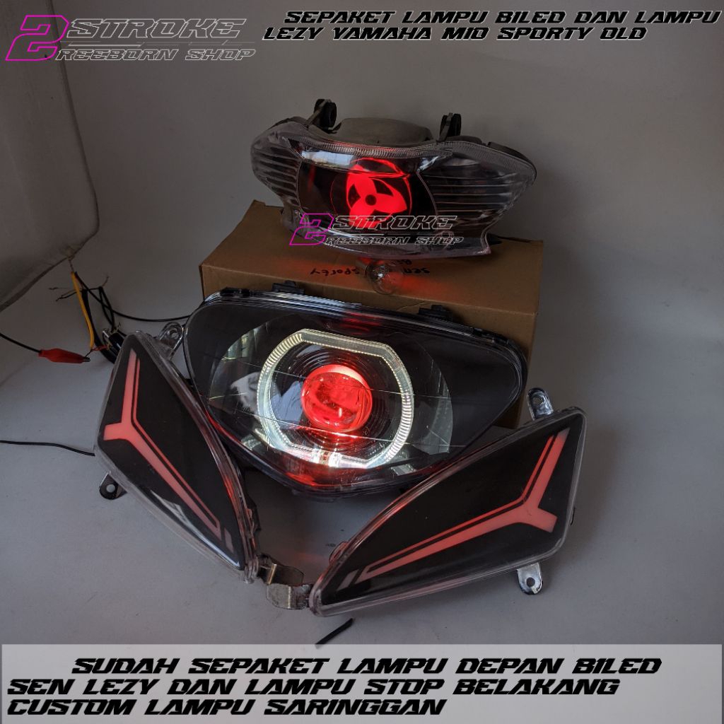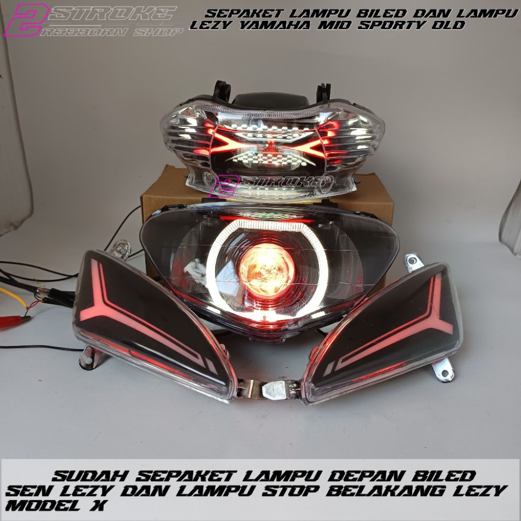 sepaket lampu biled dan lampu lezy yamaha mio sporty old cusstom lampu depan biled 4,5 inc lampu sen lezy dan lampu stop