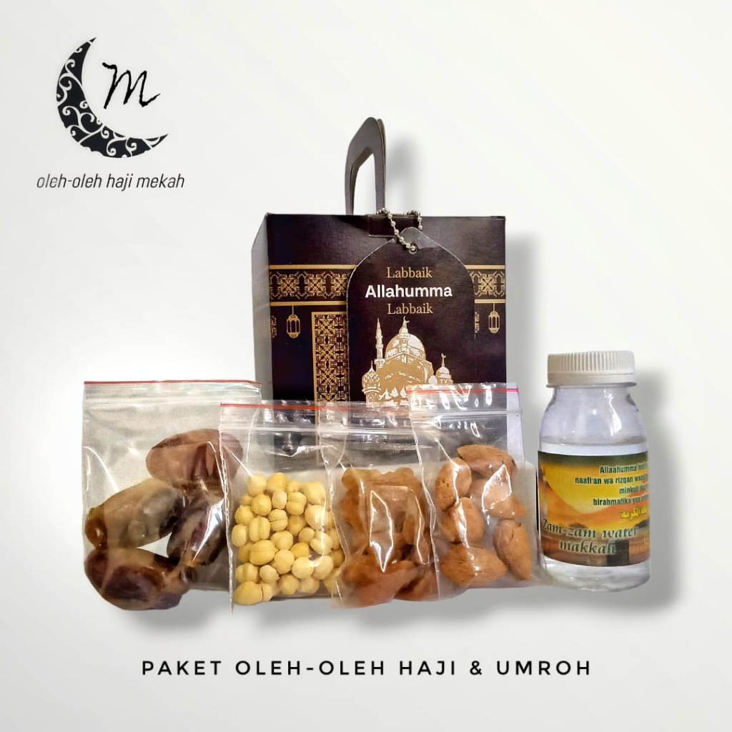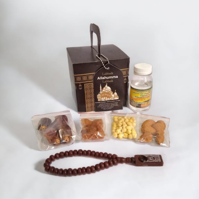 paket hemat dus Ka'bah + almond + tasbih oleh-oleh haji dan umrah