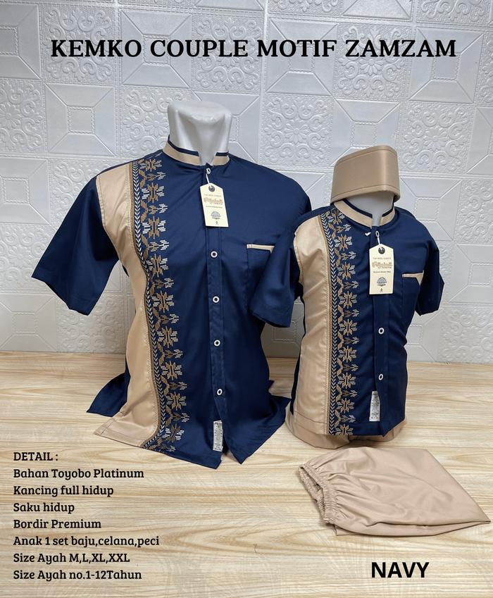 Agnina Kemeja Koko Couple Ayah Anak - Atasan Muslim Pria Bordir - Sarimbit Lebaran Kembaran Murah - Navy, Dewasa Ayah Sa