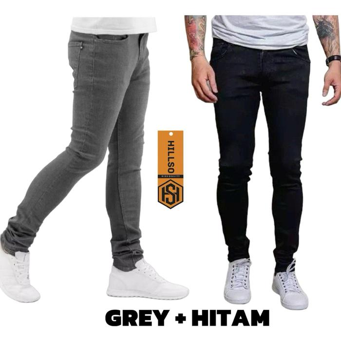 Paket Hemat Isi 2 Pcs - Celana Jeans Pria Slimfit Bahan Melar Celana Pensil Pria - Grey + Biru Muda, 20