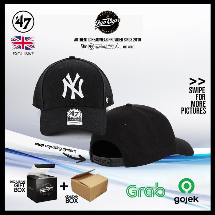 Topi 47 Original Mlb New York Yankees Mvp Warna Hitam | Free Gift Box - Velcro