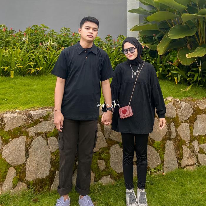 Batari Couple By Hagia | Sudah Couple Kaos Kerah Pria Dan Blouse Wanita Combed - Dusty Blue