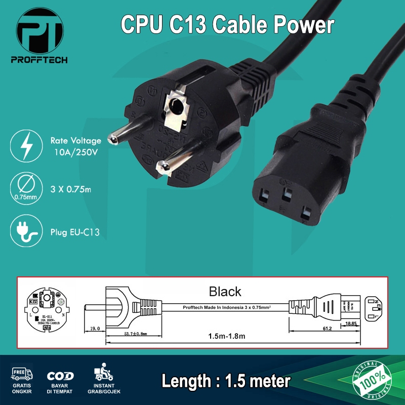 Kabel power PC CPU C13/C15 tebal 1.25mm-1.75mm 1.8M, 2M, 3M, 5M, 10M