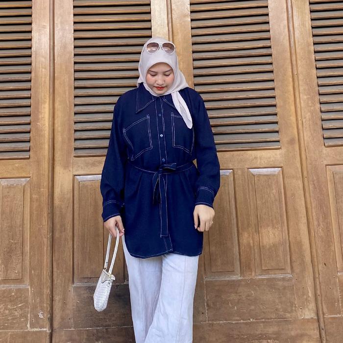 Zoey Tunik Free Belt Super Jumbo Ld 110-140 Bahan Crinkle Adem Jatuh Anti Kusut Atasan Airflow - Hitam, Ld 110