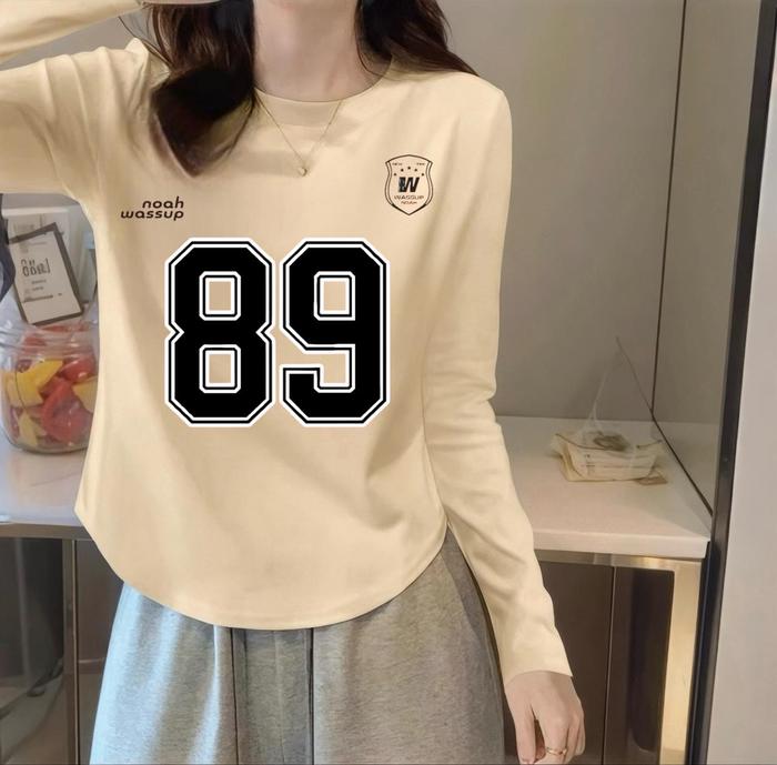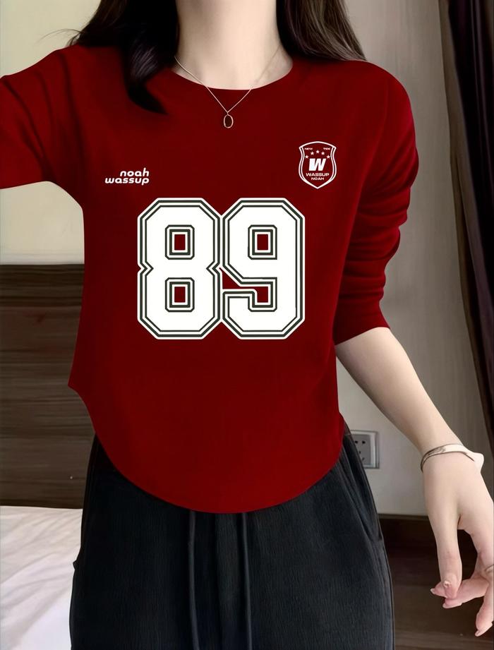 Kaos Oblong Wanita Spandek Kasual Model Oval Lengan Panjang Tshirt Distro Printing - Lime, M