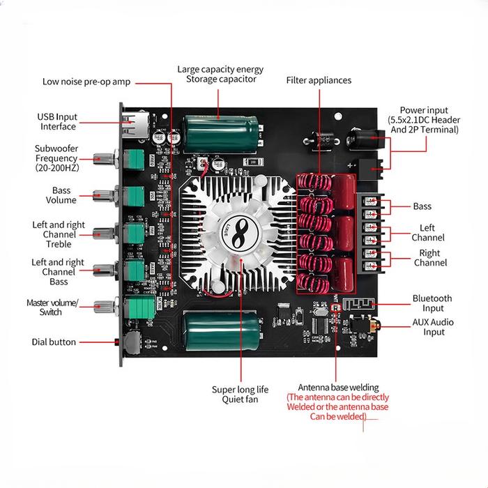 【Ready Stock】Zk-Ht21 Bluetooth Digital Power Amplifier Amplifier 2.1 Channel 【Tda7498E】 Subwoofer Nada Tinggi Dan Rendah