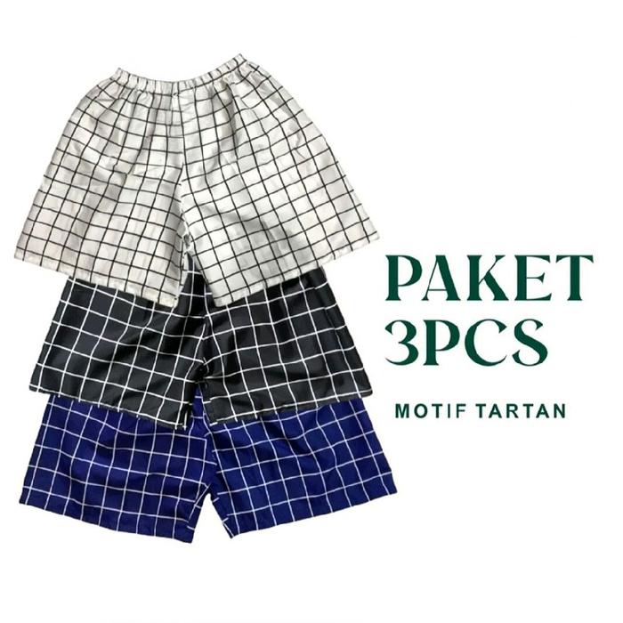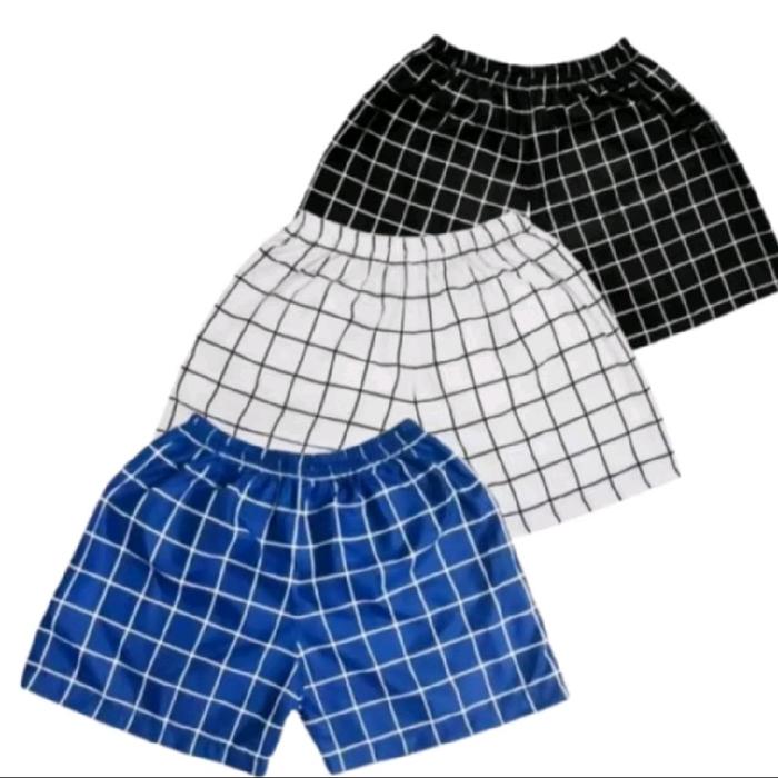 Paket Bundling Random 3Pcs Short Pants Boxer Unisex Motif Kotak-Kotak Casual Tartan Nyaman Outfit Celana Pendek Santai K