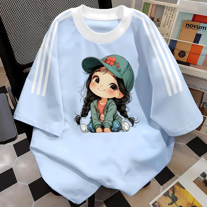 Street Premium T-Shirt Lengan Pendek Kaos Oversize Tiga Garis Korea Premium 100 PERSEN Katun | Cap Style Pria Wanita Nyaman S