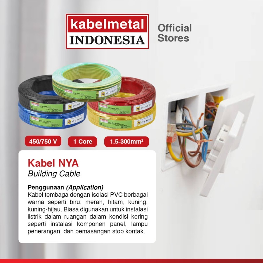 Kabel NYA 1.5 mm 50 Meter Roll kabelmetal Engkel Kawat Tembaga Tunggal PVC Listrik SNI KMI